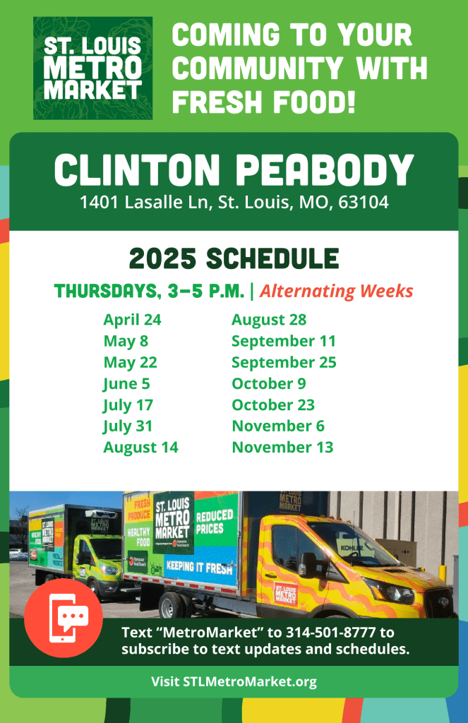 The Metro Market is returning to Clinton Peabody this Spring! The bus will stop at Al Chappelle every other Thursday between 3:00 – 5:00pm. If you haven’t been to the Metro Market, it is a mobile grocery store that provides fresh, locally-sourced produce and other items at lower costs than you typically see in the grocery store.