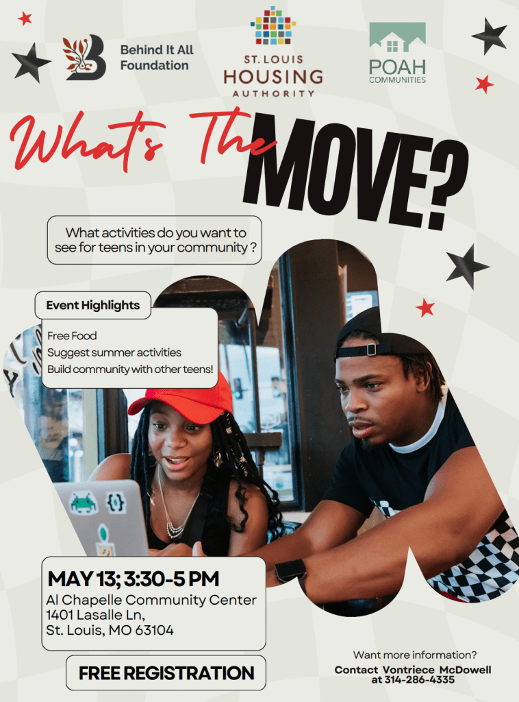 New this month, we will be hosting TWO events on Thursday, May 15th. Join us at 1:00pm for a Public Safety Meeting with representatives from the St. Louis Police Department. This meeting will be focused on answering concerns that have been brought up in our past meetings.