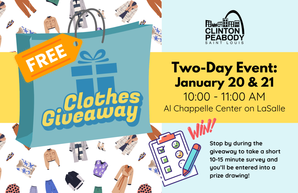 Join your TAB members for a free clothes giveaway on Tuesday, January 20 and Wednesday, January 21st between 10:00 – 11:00 AM. The event will take place at Al Chappelle Community Center on LaSalle Lane.